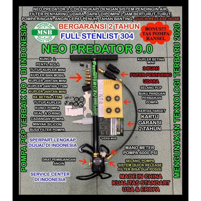 Kaliber 4.5 mm / 177 laras bahan seamless diameter 13 mm, panjang 30 cm serobong laras diameter 19 mm terdapat cincin jual senapan pcp predator mini model terbaru simpel dan kecil mudah untuk di bawa kemana.